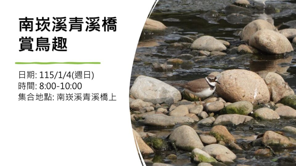活動主辦人:范卓昭和社團法人桃園市野鳥學會 地點:南崁溪青溪橋 時間長度:2 小時…