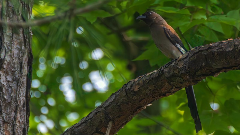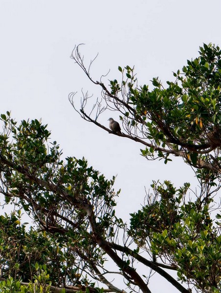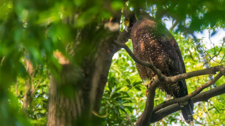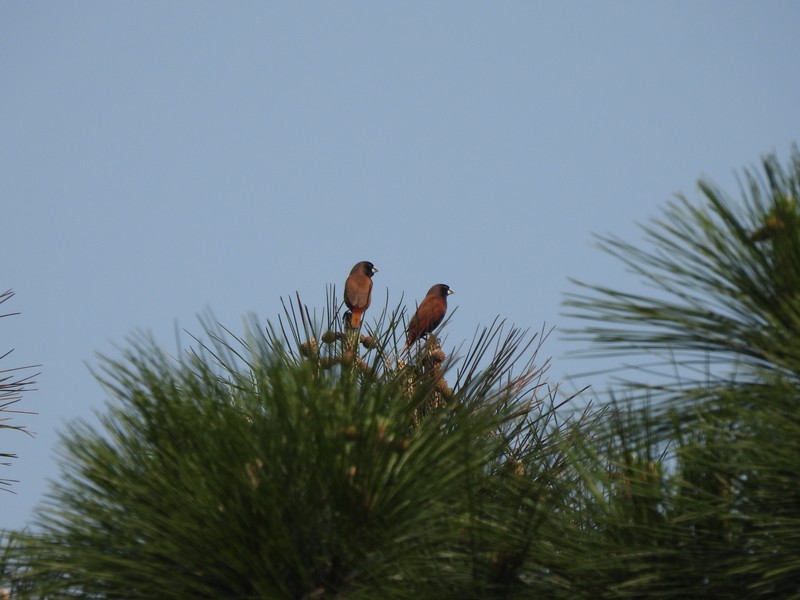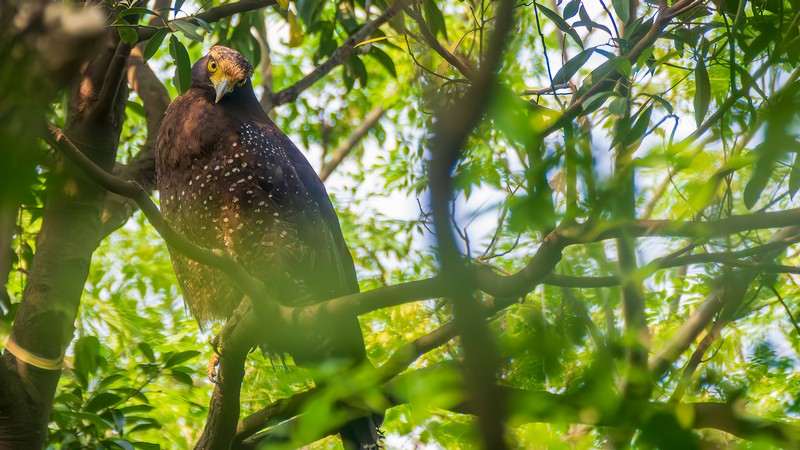 兩隻黑頭文鳥站立枝頭已幸運,兩隻大冠鷲在五百障礙場樹林裡,躲得很好,但沒逃過解說老師的法眼!