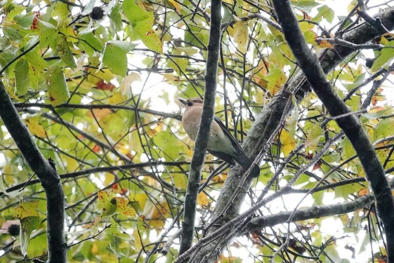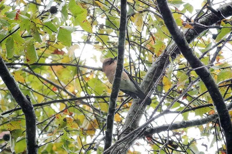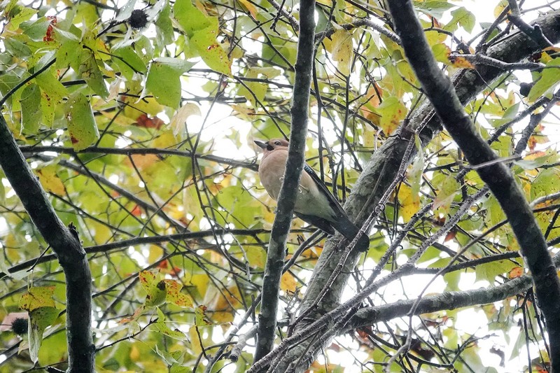 還有更棒的,今天中海拔降遷的鳥看得也很過癮,除了可預期的白耳畫眉,棕噪眉躲躲藏藏地現身,東方毛腳燕在空中晃來晃來去,最最最驚喜的是松鴉,好幾隻難得在烏來出現的松鴉也在我們身邊跳來跳去,吸睛的程度連同時現身的朱鸝都被嫌礙眼 XD