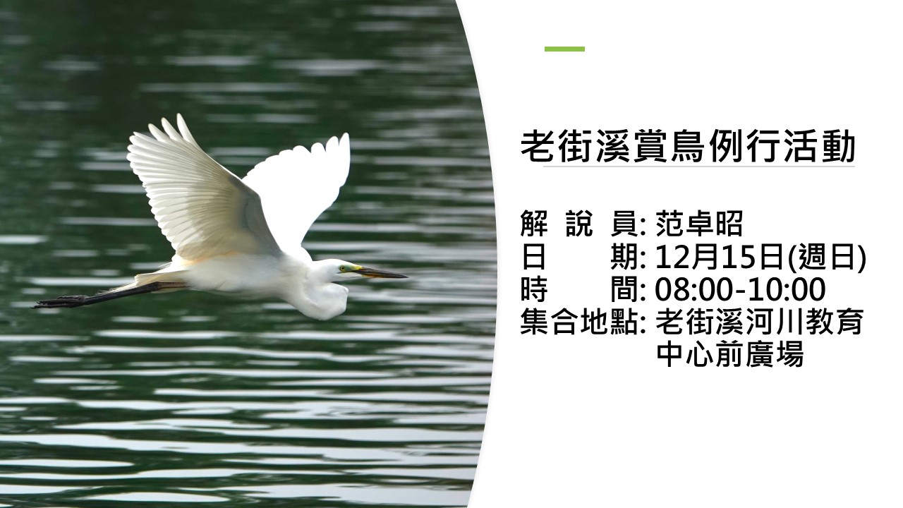 活動主辦人:范卓昭和社團法人桃園市野鳥學會 老街溪河川教育中心前廣場