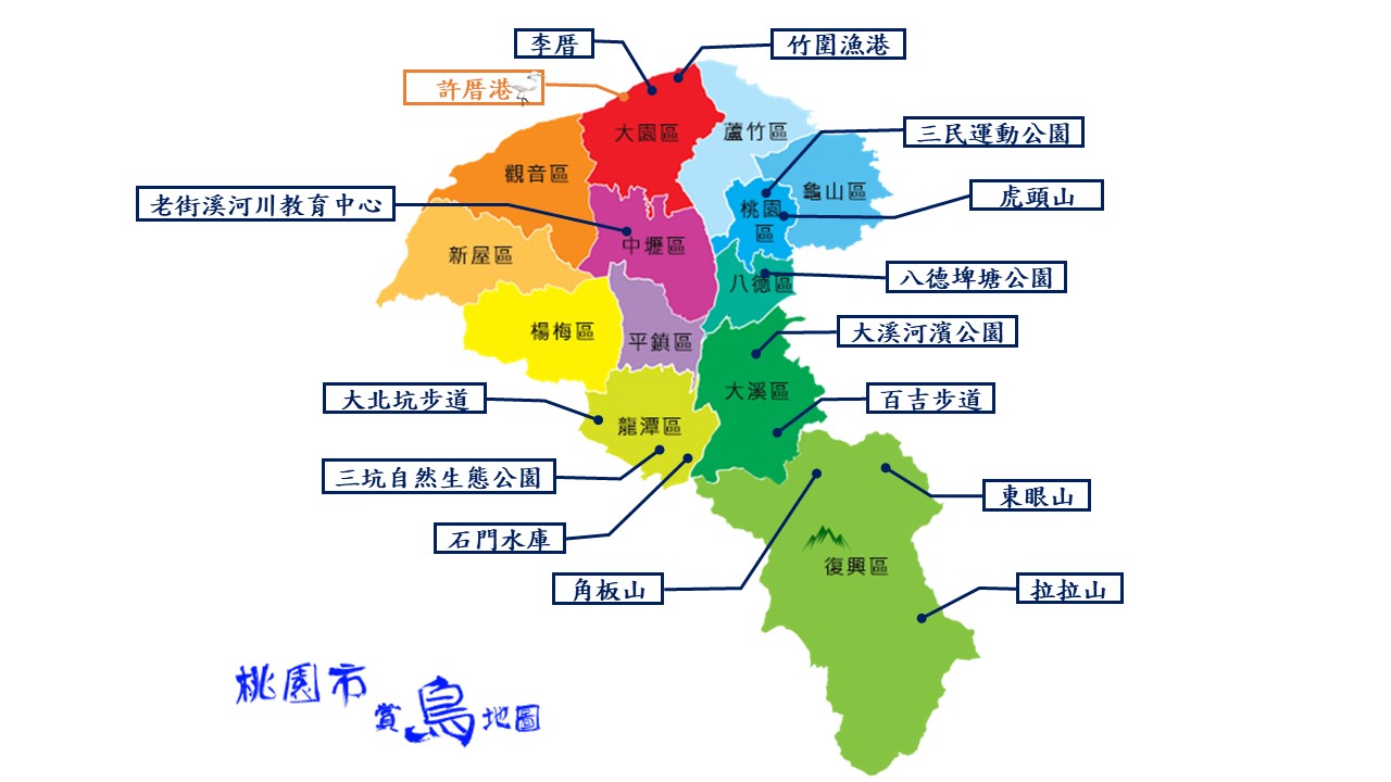註: 許厝港是個港口,因為許姓人家在港邊聚集形成地標,故名許厝港,港口位於老街溪與雙溪口溪出海口。為清朝時中國沿海與台灣重要出入港口之一,1902年日人在許厝港設稅關監視署,1912年(大正元年)鋪設輕便軌道從桃園埔心、大坵園至許厝港,造就了過去大園地區的興盛,1939年因完成汽車運輸道路而拆除輕便軌道,航運隨著鐵路的發達轉移至基隆港及淡水港,許厝港逐漸廢棄及沒落。1945年後由於喪失海運貿易而於國民政府時期廢設。許厝港泥沙淤積,自然演變成濕地型態。–郭啟榮撰文–